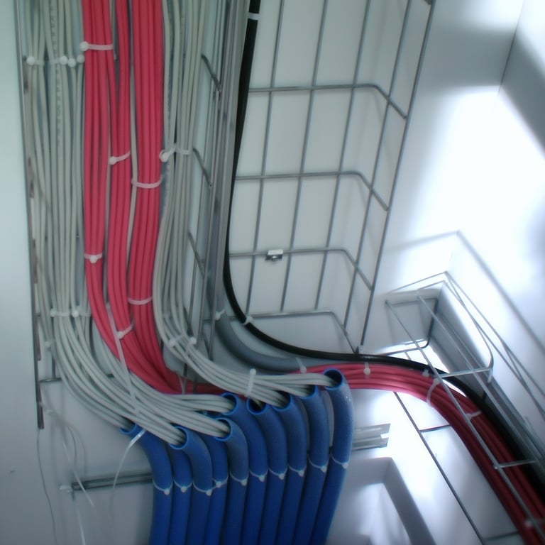 Color-Coded Systems: Red cables for power, white/gray for data communications