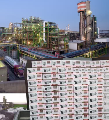 Specialized security systems for chemical manufacturing facility requiring the highest safety standards. Hazardous environment monitoring, emergency alert systems, secure communications, and comprehensive surveillance for worker safety and facility protection.